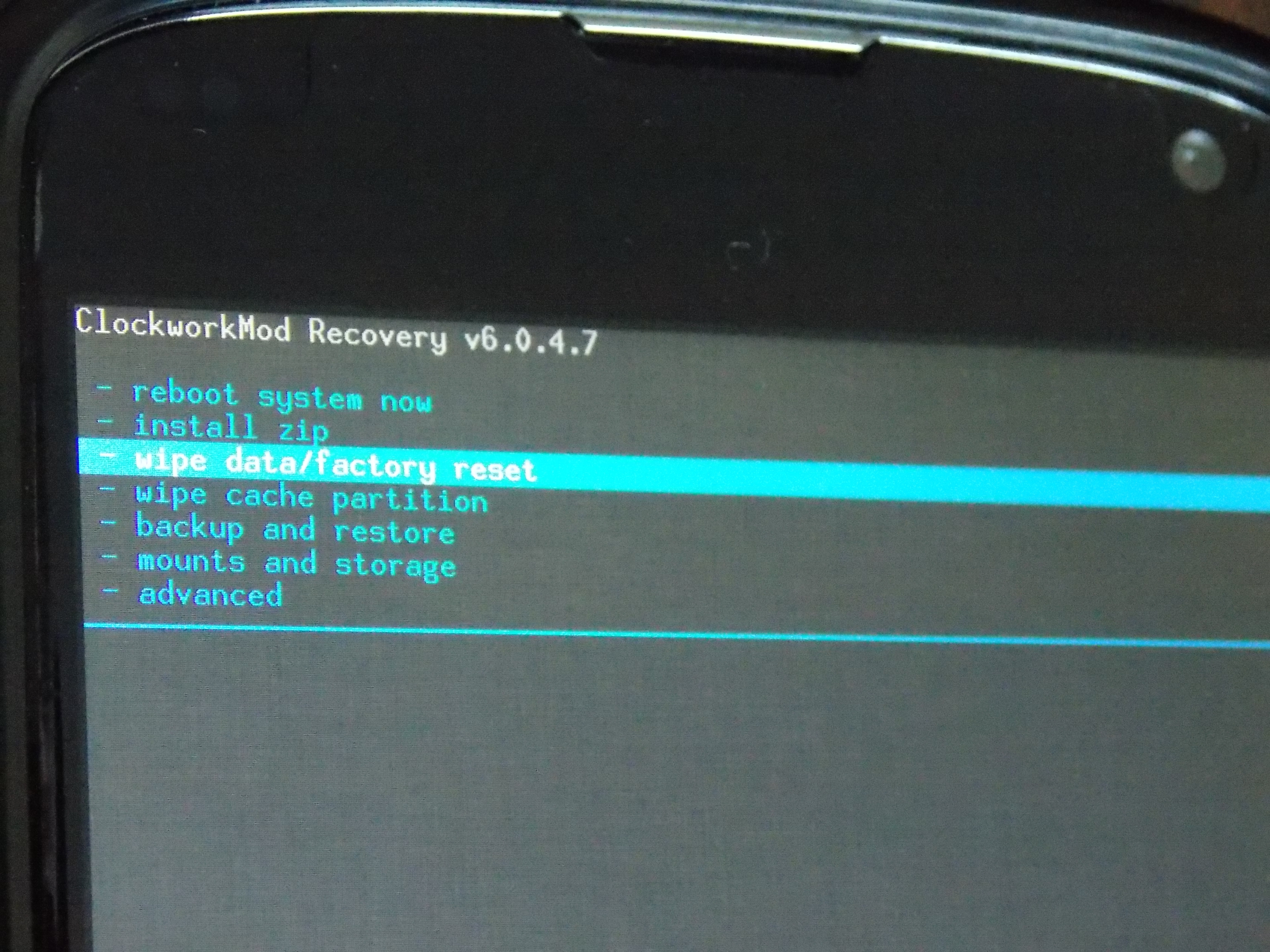 C’est maintenant que le sérieux commence, fermez complètement votre appareil (cette démonstration se fera au moyen de la dernière version de CWM):
