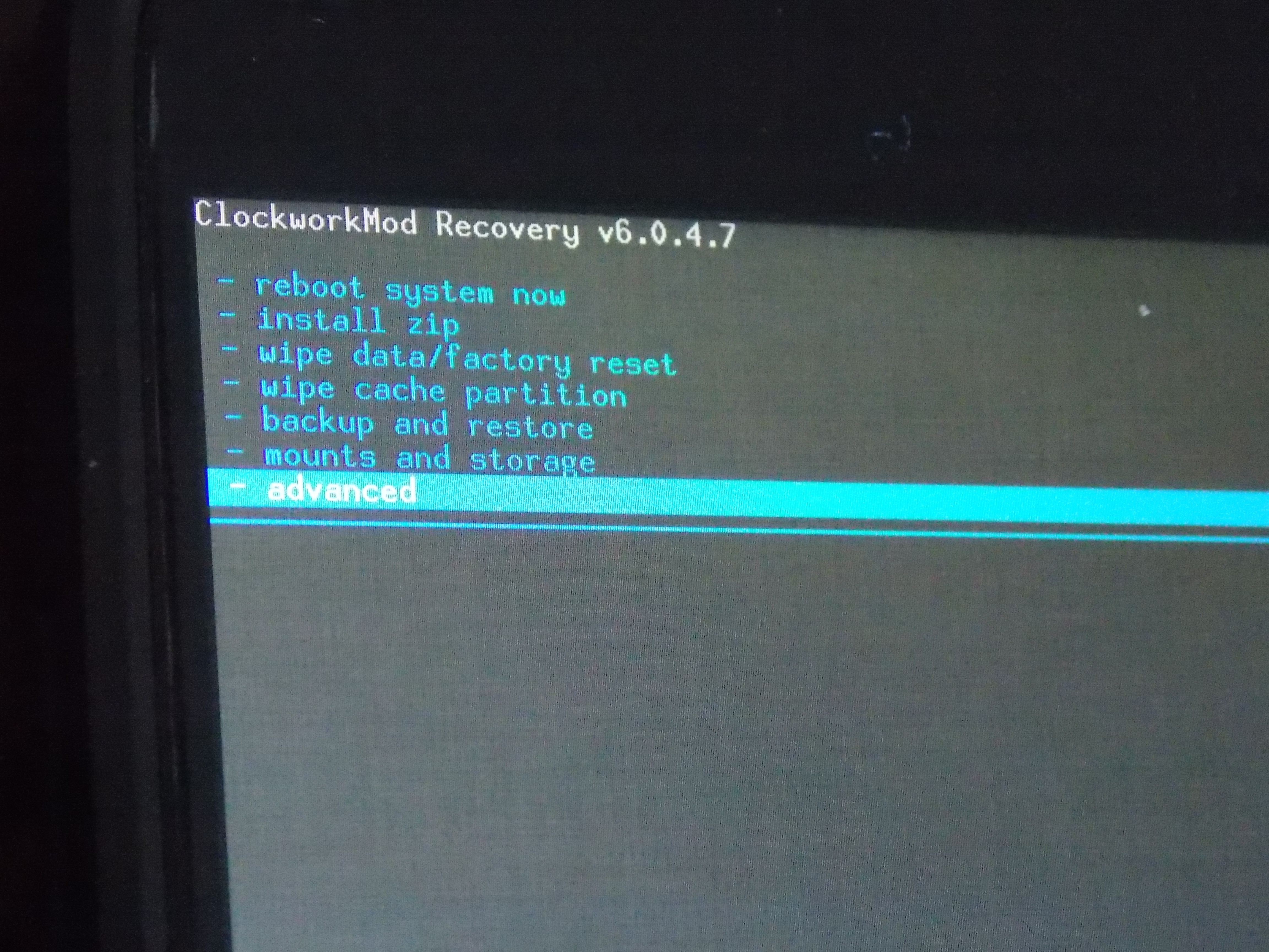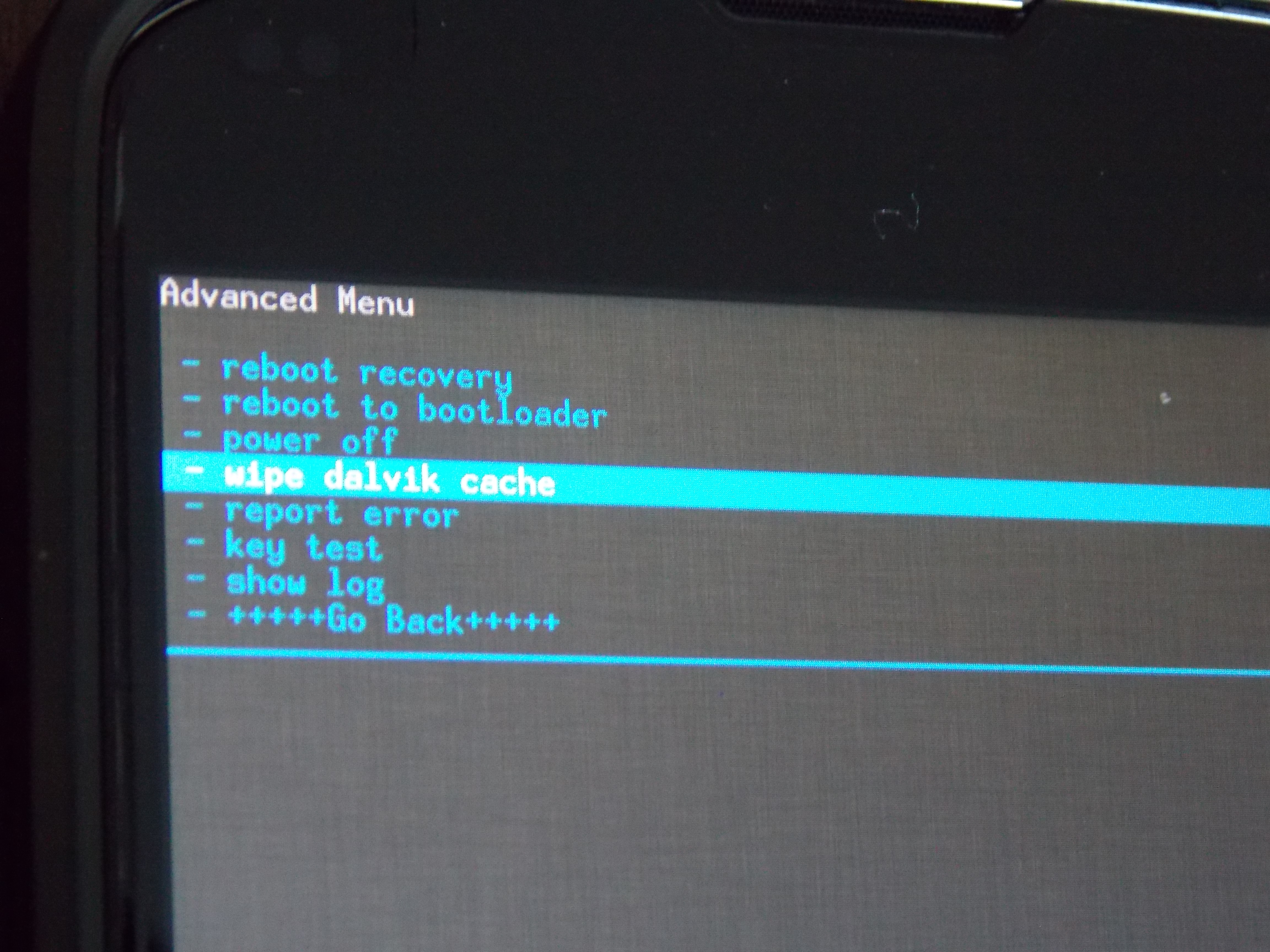 4. Maintenant, sélectionnez l’option Advanced, puis faites Wipe dalvik cache selon le même principe que les deux premiers « wipe ».étape4étape5