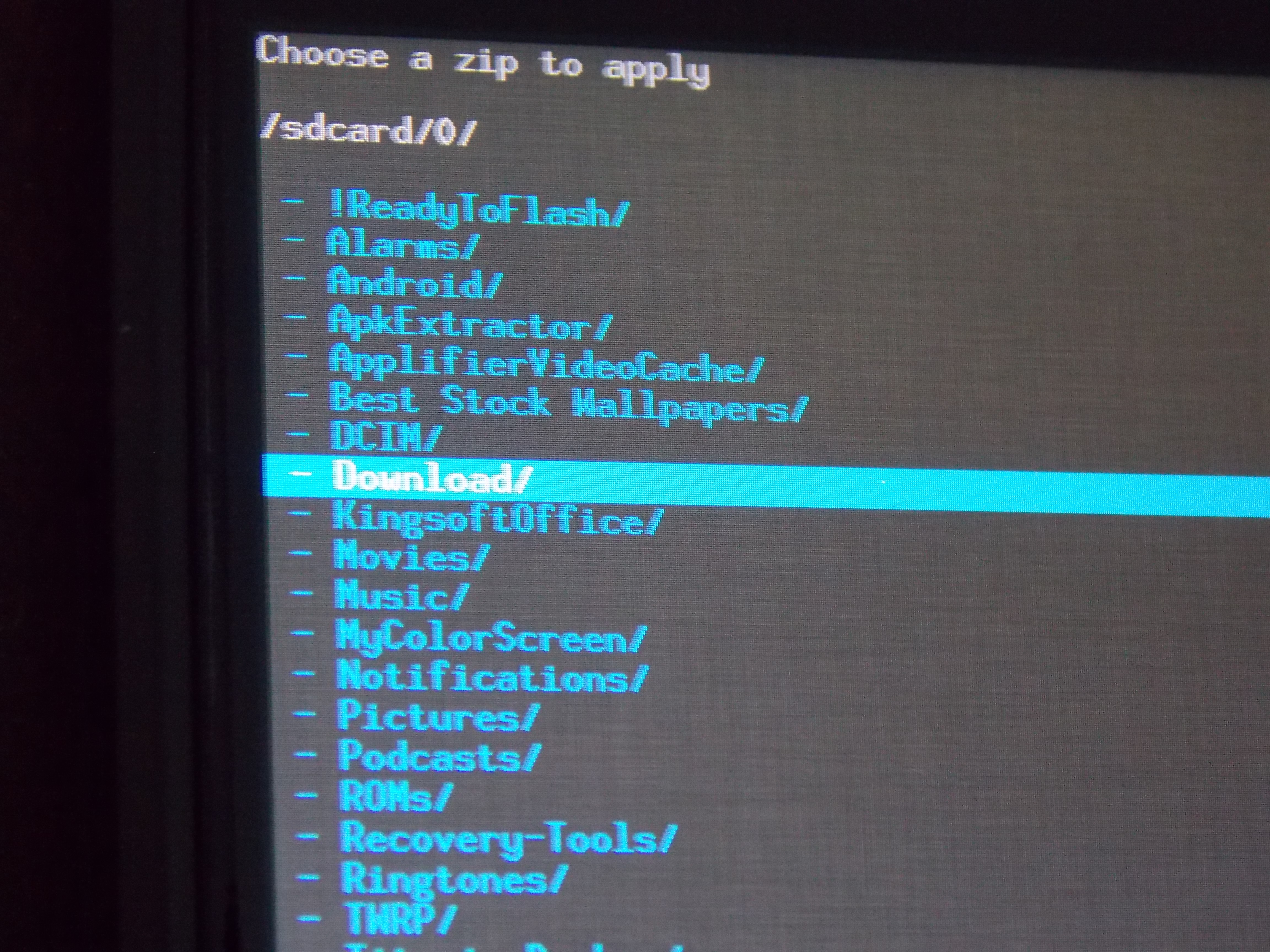 Ensuite, il est impératif de télécharger le fichier .zip à flasher dans la mémoire interne de l’appareil ( /sdcard), ou encore dans la mémoire externe, c’est-à-dire sur la carte microSD (/sdcard-ext). Les principaux développeurs de customs roms sont CyanogenMod, Paranoid, AOKP, MIUI (qui est très proche visuellement de iOS), CarbonROM et SlimBean. Les fichiers .zip sont facilement accessible sur leur site internet et faite gare à télécharger le fichier spécifique à votre appareil (ex: le nom de code du Nexus des MAKO, celui du Galaxy S4 canadien est SGH-i337m). Certains téléphones comme les Moto X/G, Nexus 4/5 n’ont pas de fente microSD et donc vous n’aurez pas le choix de télécharger le fichier sur /sdcard. Une fois l’emplacement choisi, vous pouvez laisser le fichier dans aucun autre sous-fichier ou le placer dans un endroit facilement accessible.